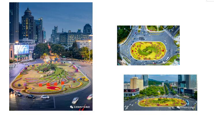 在廣場(chǎng)南、北兩側(cè)分別勾勒造型花帶,精致飄逸,色彩明亮,花帶內(nèi)嵌“2022”數(shù)字的亮化燈帶,與造型花帶完美契合,輕舞飛揚(yáng)。廣場(chǎng)四角還有12個(gè)大小各異的造型花球,活潑靈動(dòng)?;ɑ懿贾眠x用超級(jí)海棠、一品紅、矮牽牛、百日草、洋鳳仙、孔雀草、佛甲草等多種品質(zhì)的花卉,色彩豐富絢麗、繁花似錦、百花齊放,營(yíng)造一種熱烈、喜慶、歡樂(lè)的節(jié)日氛圍。