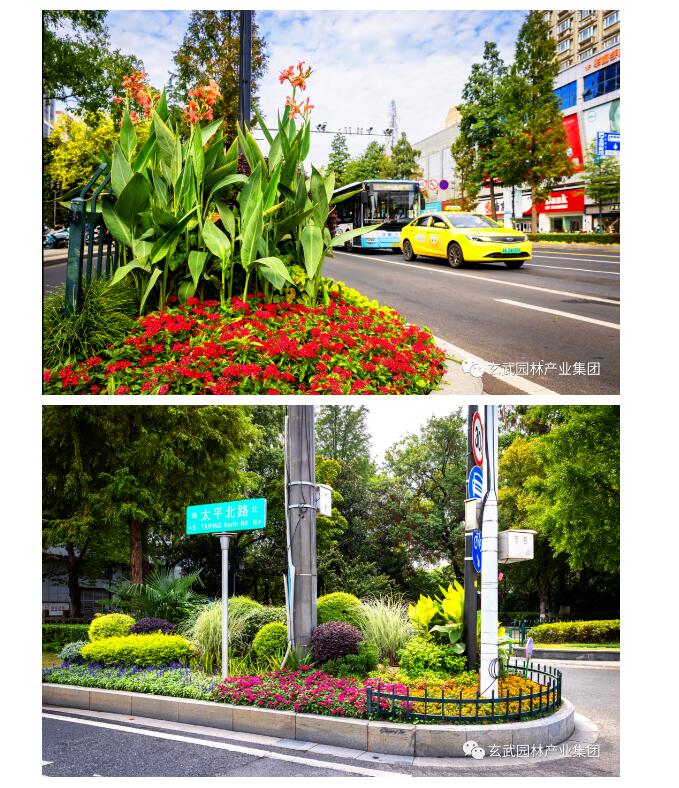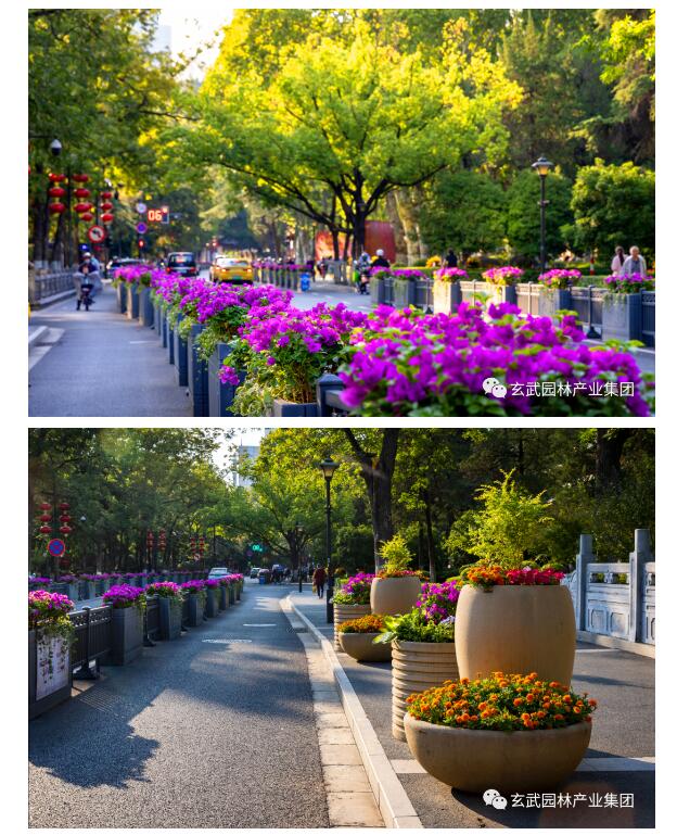 對(duì)北京東路、珠江路、市府門(mén)前路、太平北路、玄武大道、龍?bào)绰返染G島及島頭花境選用一品紅、萬(wàn)壽菊、三角梅、洋鳳仙、麗格海棠、矮牽牛、歐月、藍(lán)雪花、超級(jí)海棠、翠蘆莉、一串紅、孔雀草、石竹等靚麗多彩、品相精致的花卉進(jìn)行布置,城市街景處處繁花似錦、百花齊放,營(yíng)造栩栩如生、欣欣向榮的景觀(guān)效果。